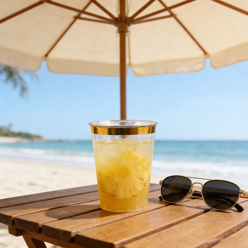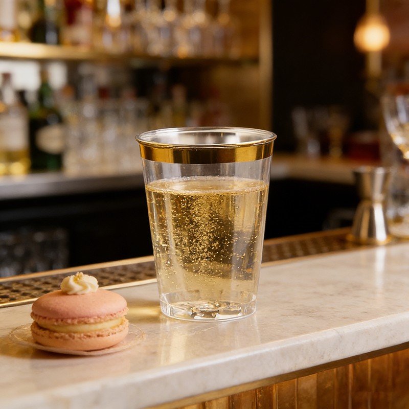 تصميم أنيق بحافة ذهبيةجسم شفاف كالكريستال مع حافة ذهبية لامعة، مظهر أنيق وراقي لإضفاء لمسة جمالية على طاولات حفلات الزفاف والحفلات والمناسبات الرسمية.