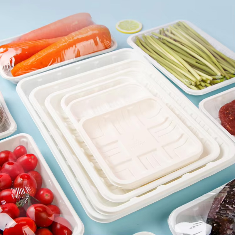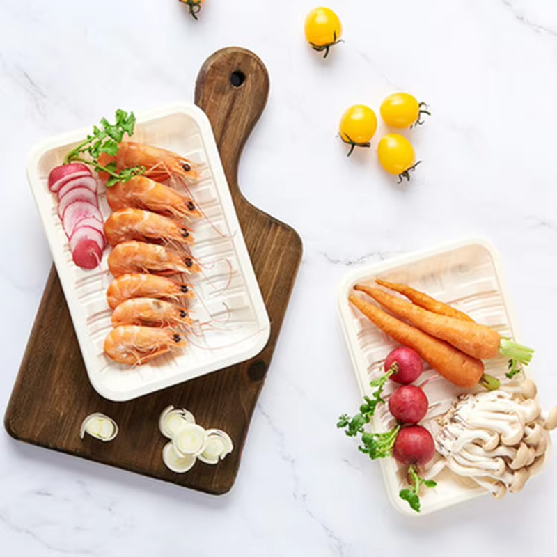 حفظ الطعام بشكل ممتاز:إن الوضوح والصلابة الممتازين لصواني PLA الخاصة بنا يعرضان منتجاتك بشكل جذاب، في حين يساعد تصميمها الوظيفي على امتصاص الرطوبة وإطالة العمر الافتراضي، مما يحافظ على نضارة قطع اللحوم والفواكه وتبدو نابضة بالحياة.