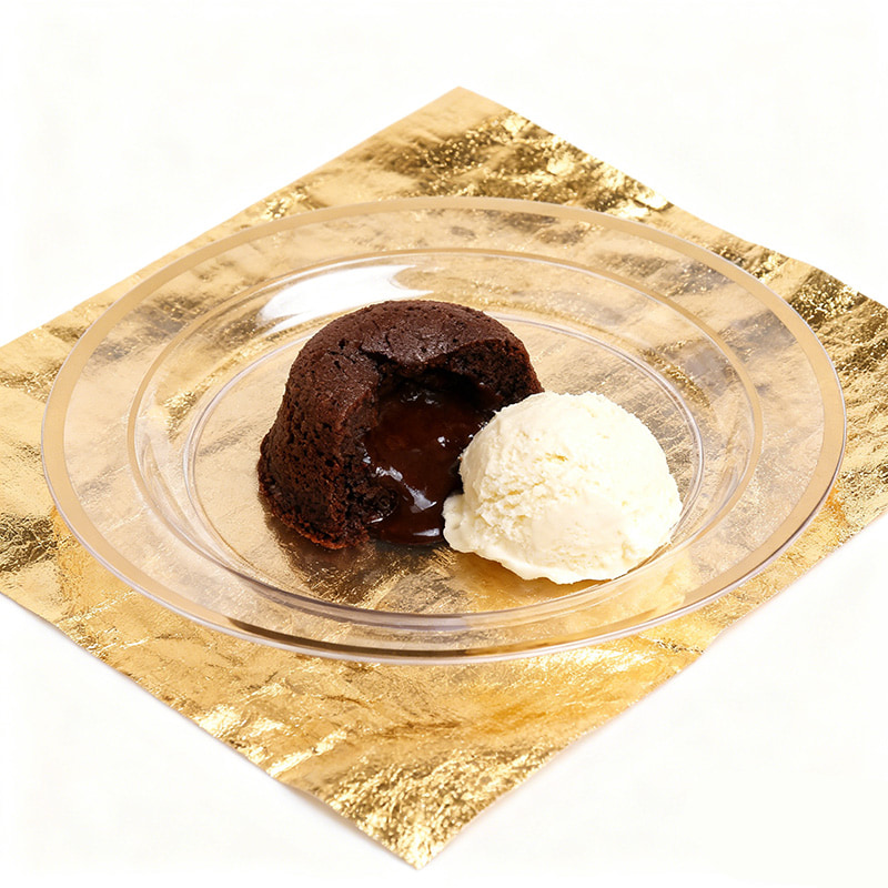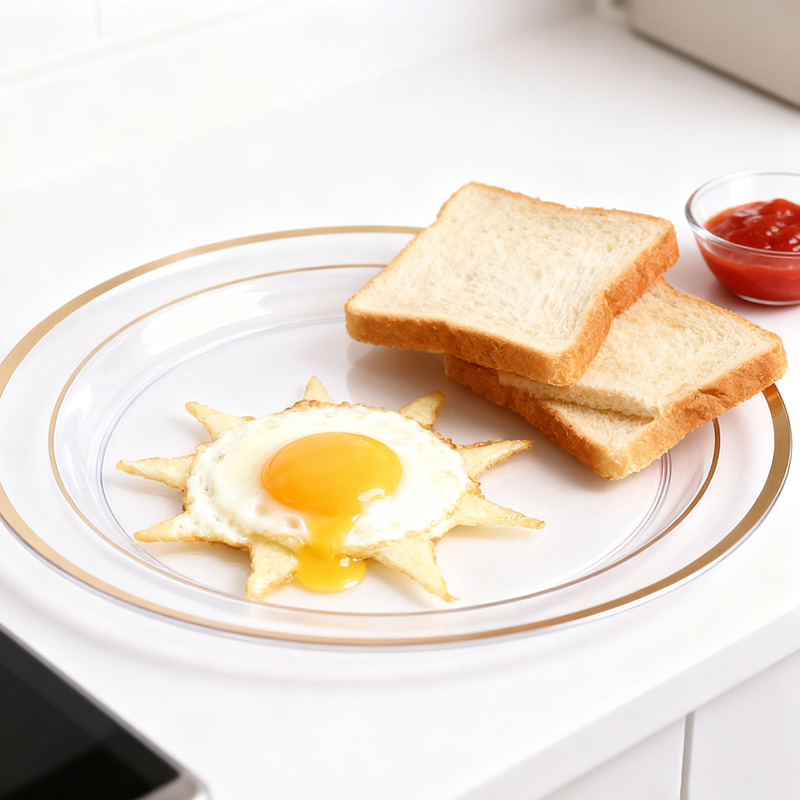 clear plate + gold rimتصميم أنيق بحافة ذهبية: حواف ذهبية أنيقة على طبق شفاف، ترتقي بجمالية تناول الطعام والتقديم