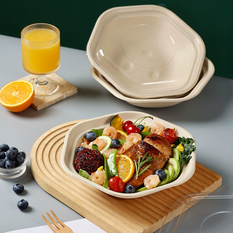228*66mm, 228*79mmHexagon Sugarcane Bowls: Sustainable, Sturdy & Leak-Proof.