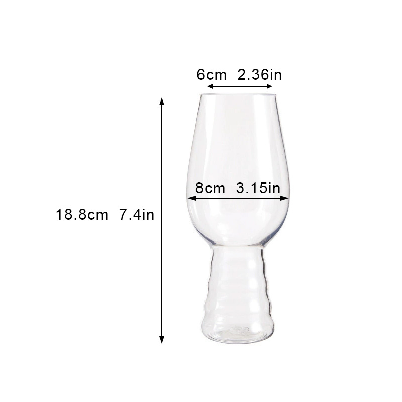 H18.8cm*W8cm*6cmسعة فائقة السخاء تبلغ 18 أونصة: الحجم الكبير 18 أونصة مثالي لصب كميات كبيرة من البيرة، أو مشاركة الكوكتيلات، أو تقديم كميات كاملة من النبيذ، أو حتى تذوق أنواع مختلفة من التكيلا مع الملح والليمون.
