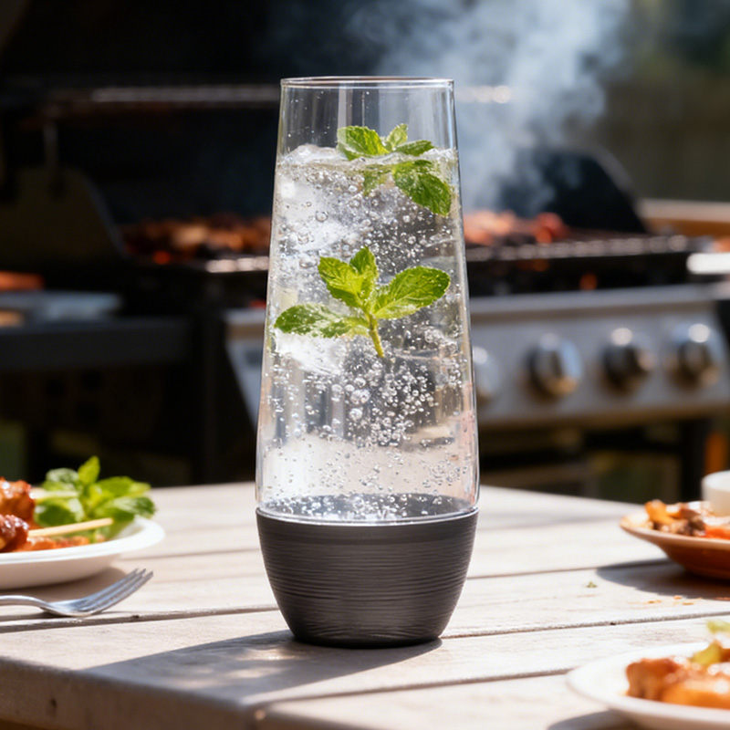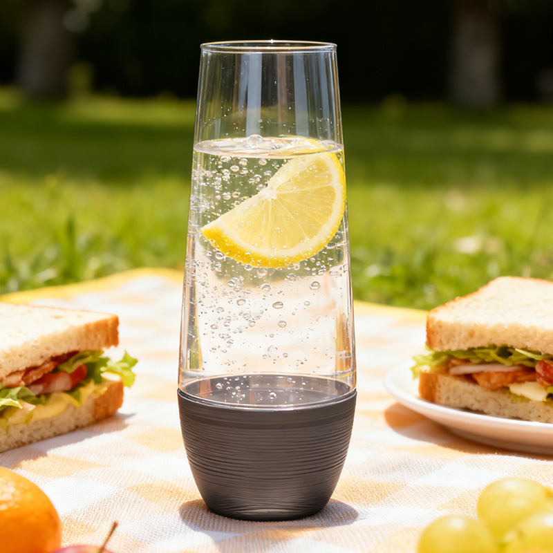 Crystal-Clear Glass-Like Aesthetic: Ultra-transparent PET material mimics the sleek look of traditional stemless glassware, enhancing the visual appeal of colorful cocktails, bubbly champagne, or refreshing iced drinks.