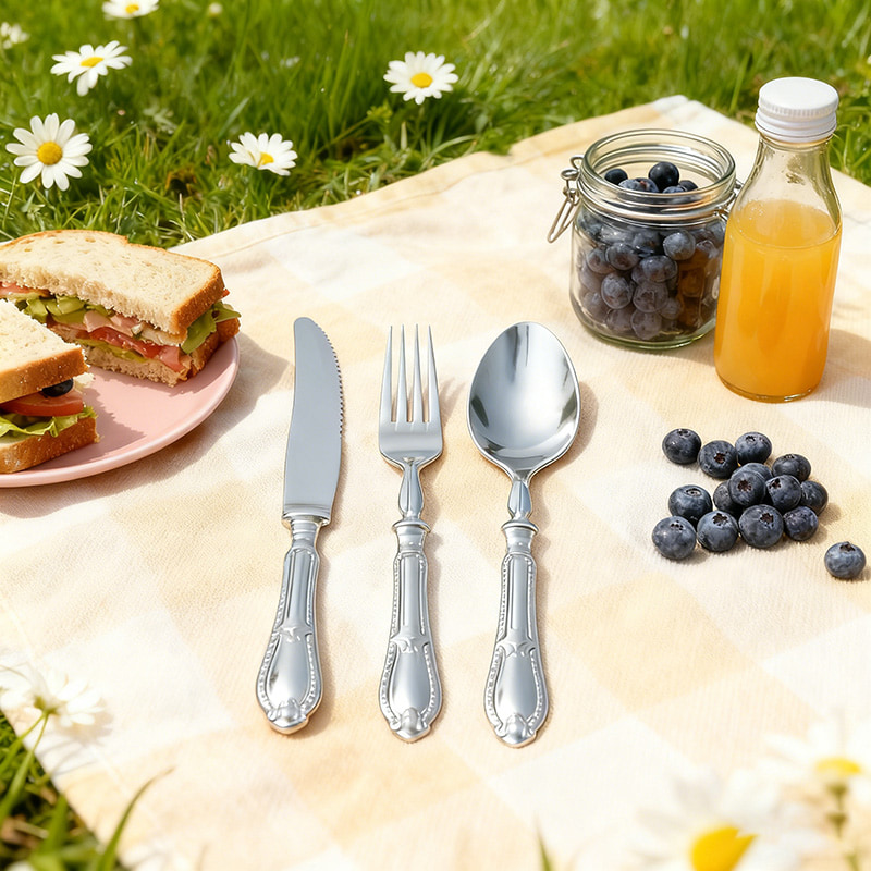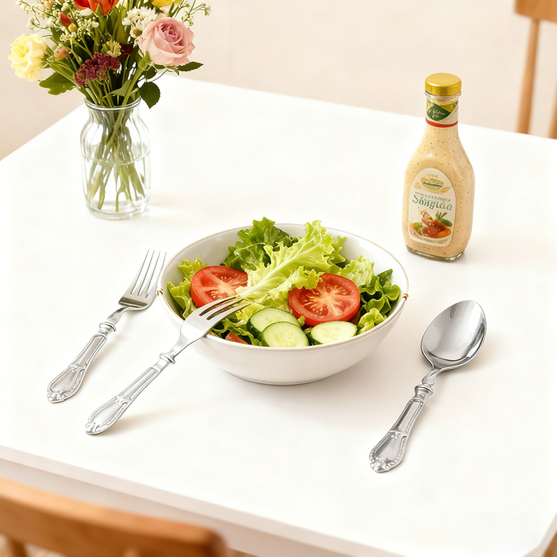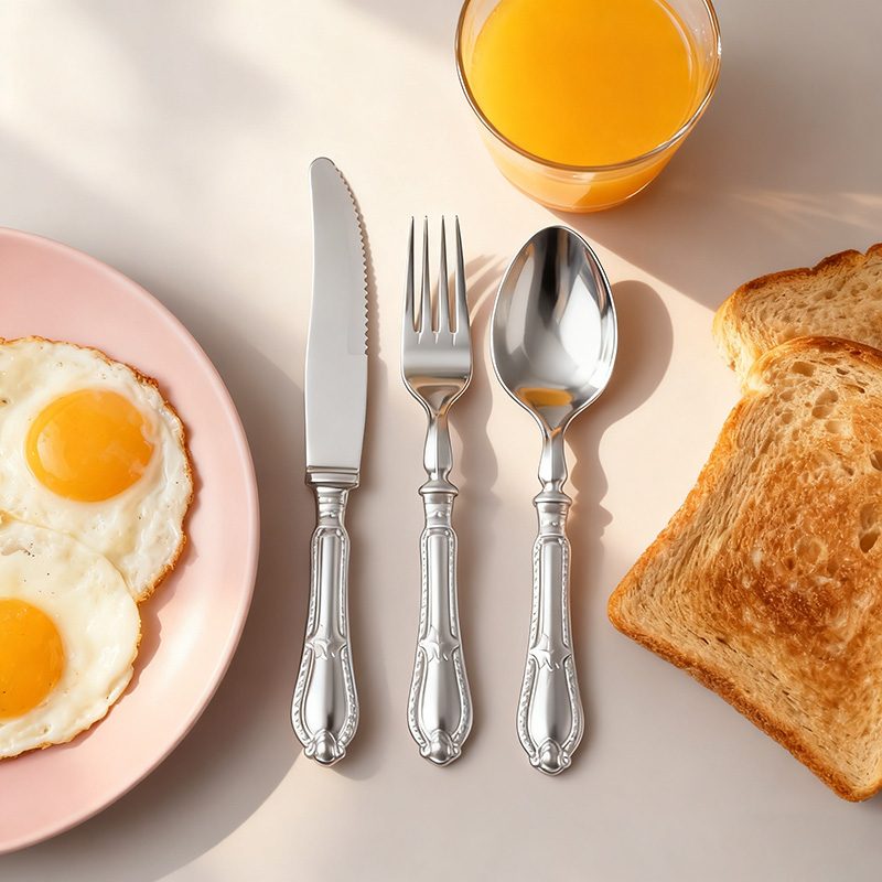التصميم الوظيفي العملي: تقطع السكين اللحوم المشوية والكعك والمقبلات بسهولة؛ وتغرس الشوكة السلطات والمأكولات البحرية بأمان؛ وتغرف الملعقة الحساء والحلويات بسلاسة، مما يلبي جميع احتياجات تناول الطعام في المناسبات والتجمعات.